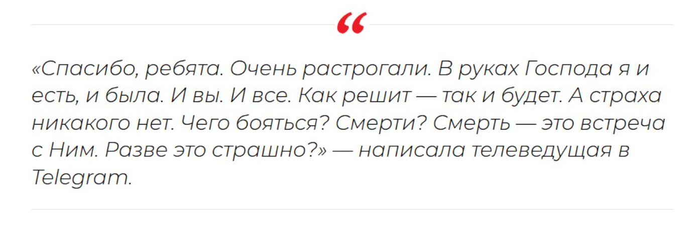 Сейчас журналистка постоянно молится и надеется хоть на какие-то улучшения, ведь на ней не только дети, но и пожилая свекровь. Чтобы избежать сплетен, Маргарита Симоньян сама рассказывает о своей болезни и не скрывает подробностей. Комментаторы же считают, что таким образом она “словила бумеранг”. Что скажете?